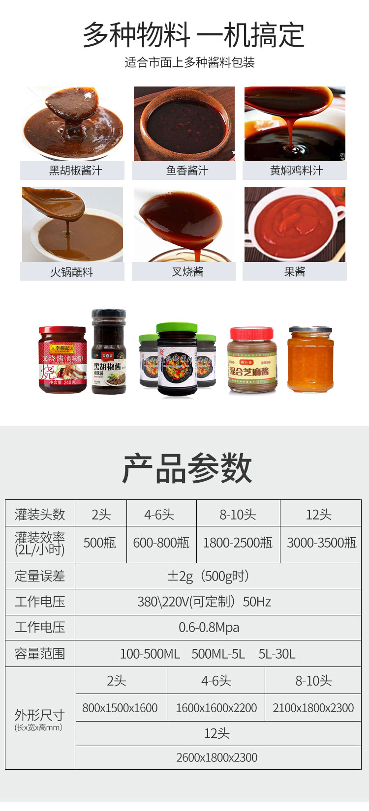全自動醬汁灌裝機可實時根據不同產品做出不同的調整,操作方便,內置各種配方一鍵保存讀取。傻瓜式操作界面。