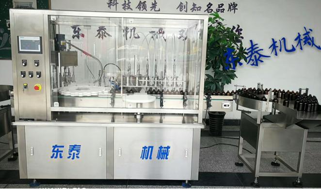 對(duì)于注重快速精準(zhǔn)的小瓶灌裝,迅捷機(jī)械拿出了自己的方案,那就是新一代的小瓶灌裝機(jī)。該小瓶灌裝機(jī)屬于全自動(dòng)旋轉(zhuǎn)式,適用于小劑量液體灌裝,如精油、眼藥水、口服液、糖漿、電子煙油、藥液等。集灌裝旋蓋為一體,灌裝穩(wěn)定精準(zhǔn),旋蓋不傷瓶,是小瓶液體灌裝的理想機(jī)器。